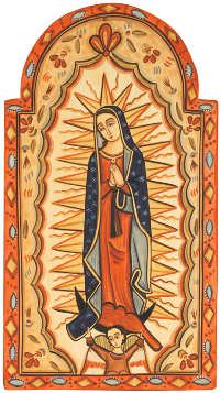 Prayer of the Holy Rosary at home, as family, with Shrine of Our Lady of Guadalupe that goes house to house.